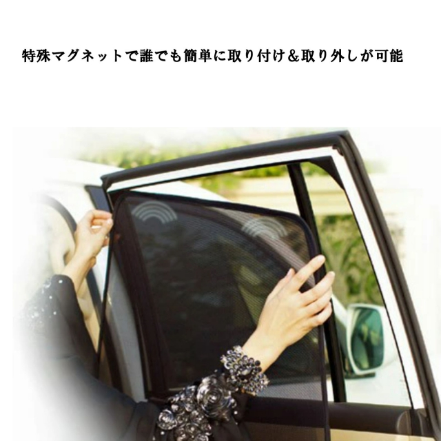 特許取得のシェード本体に内蔵されたマグネットマウントで、誰でも素早く簡単に、取り付けや取り外しが可能 。最新の3Dレーザースキャン技術と、CADによるデジタル処理で、車両ごとの完璧なフィットを実現しました。車種別専用設計のため、窓枠にジャストフィット、装着したまま窓の開閉可能です。