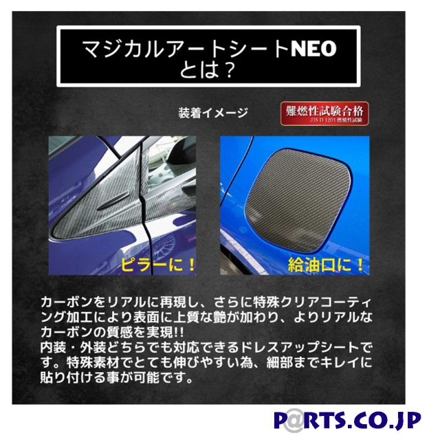 カーボンをリアルに再現し、さらに特殊クリアコーティング加工により、表面に上質な艶が加わりよりリアルなカーボンの質感を実現しました。 内装・外装どちらでも対応できるドレスアップシートで、特殊素材でとても伸びやすい為、細部までキレイに貼り付ける事が可能です
