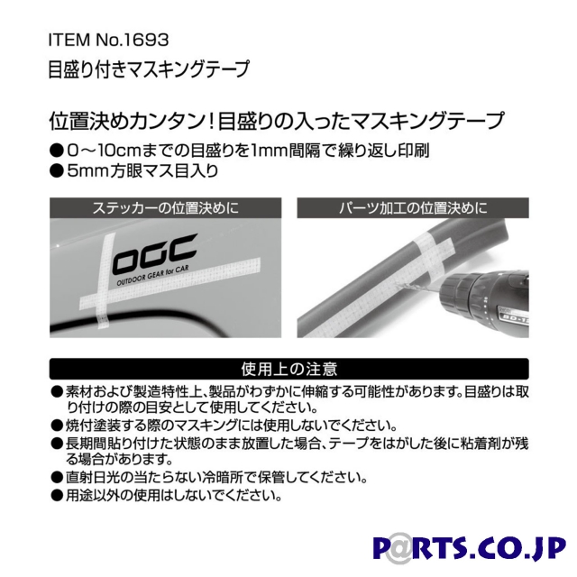 ■目盛りの入ったマスキングテープ■位置決めカンタン■LEDなど取り付けの位置決めに■ステッカーなどの位置決めに■塗装時のマスキングに■1mm間隔の目盛り入り■車内・車外用