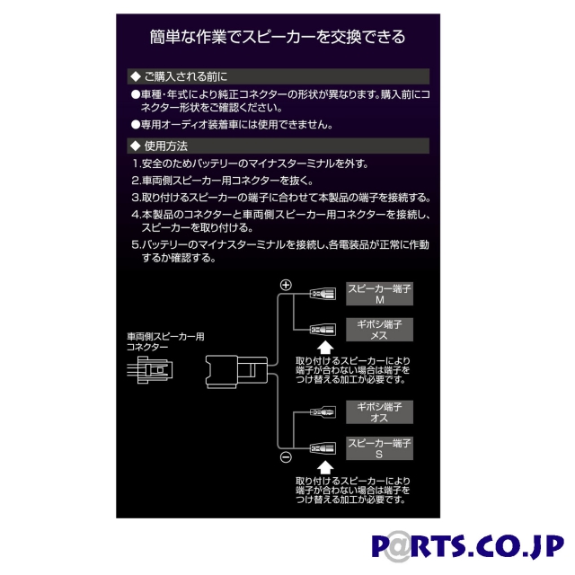 ■簡単作業でスピーカー交換できる■車両側のスピーカー用コネクターがそのまま使える■OFCコード採用■日産車用