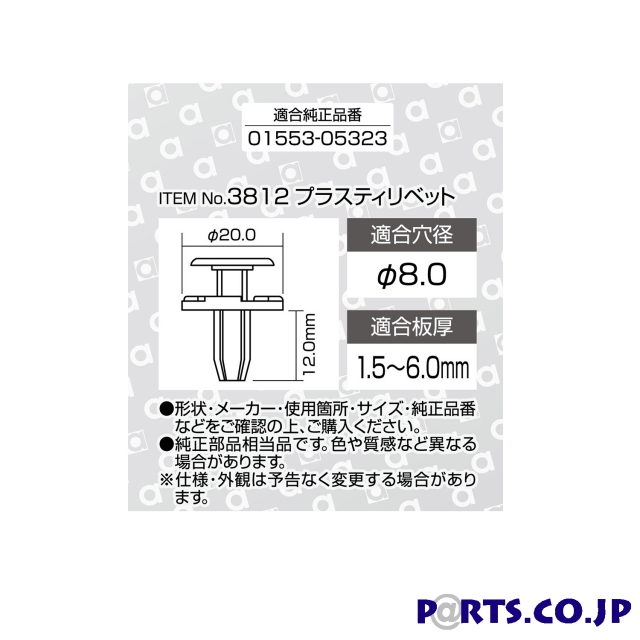 【仕様】・適合穴径:φ8.0・適合板厚:1.5 6.0mm・適合メーカー:日産・適合純正品番01553-05323