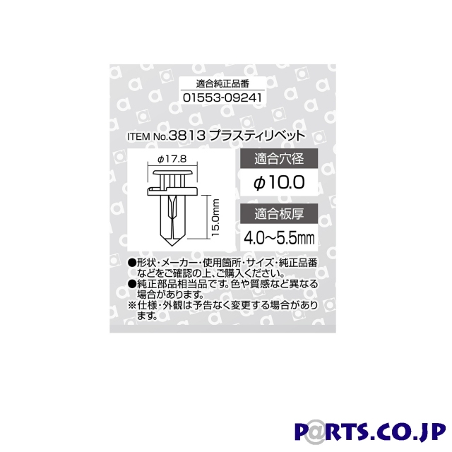 【仕様】・適合穴径:φ10.0・適合板厚:4.0 5.5mm・適合メーカー:日産・適合純正品番01553-09241