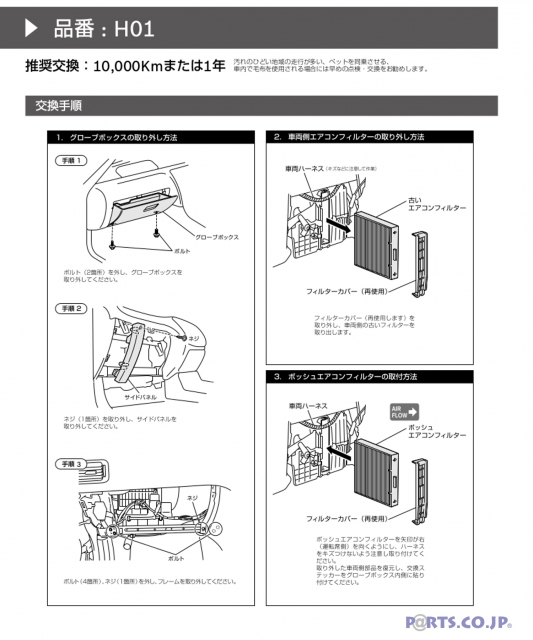 ※必ず適合(車種、年式、形式等)をご確認の上お買い求めください。※作業手順は例であり、実写と異なる場合があります。※製品に同梱されている取扱説明書の「取付・使用上の注意事項」をお読みください。※使用済のエアコンフィルターを清掃して再利用することは出来ません.