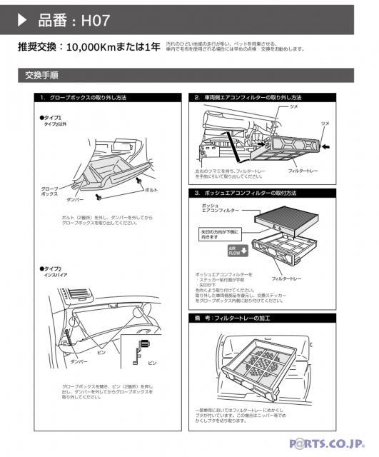 ※必ず適合(車種、年式、形式等)をご確認の上お買い求めください。※作業手順は例であり、実写と異なる場合があります。※製品に同梱されている取扱説明書の「取付・使用上の注意事項」をお読みください。※使用済のエアコンフィルターを清掃して再利用することは出来ません。※定形外郵便での発送の為追跡は出来ませんので予めご了承下さい。
