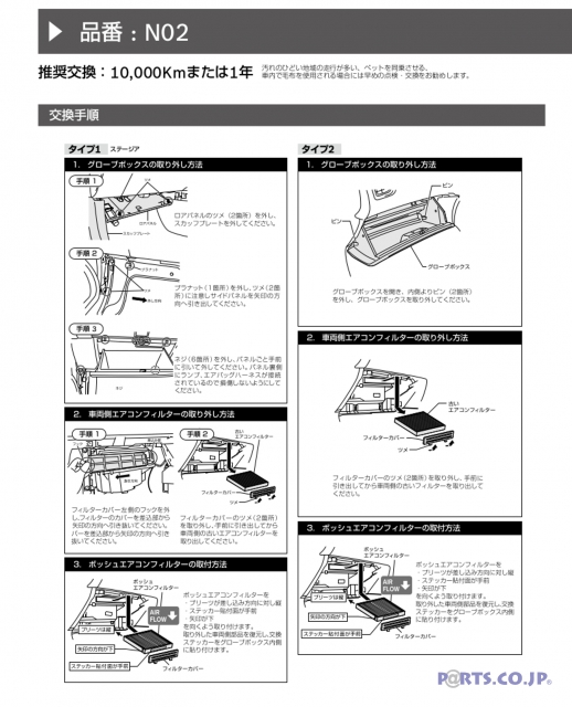 ※必ず適合(車種、年式、形式等)をご確認の上お買い求めください。※作業手順は例であり、実写と異なる場合があります。※製品に同梱されている取扱説明書の「取付・使用上の注意事項」をお読みください。※使用済のエアコンフィルターを清掃して再利用することは出来ません.