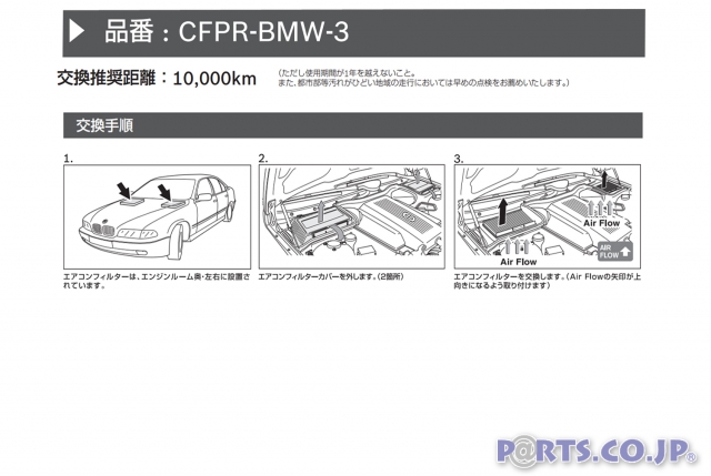 ※必ず適合(車種、年式、形式等)をご確認の上お買い求めください。※作業手順は例であり、左ハンドル車のイラストです。※正規輸入車を対象としており、並行輸入車では内容が異なる場合があります。 ※ハンドルの位置により、フィルターが付いている場所が異なる場合があります。※フィルター位置が異なる場合、AirFlow(風向)の向きが異なる場合があります。※製品の取扱説明書の「取付・使用上の注意事項」をお読みください。※使用済のエアコンフィルターを清掃して再利用することは出来ません.