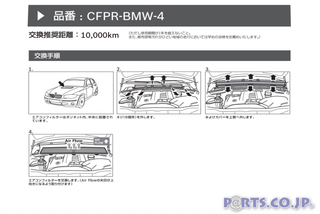 ※必ず適合(車種、年式、形式等)をご確認の上お買い求めください。※作業手順は例であり、左ハンドル車のイラストです。※正規輸入車を対象としており、並行輸入車では内容が異なる場合があります。 ※ハンドルの位置により、フィルターが付いている場所が異なる場合があります。※フィルター位置が異なる場合、AirFlow(風向)の向きが異なる場合があります。※製品の取扱説明書の「取付・使用上の注意事項」をお読みください。※使用済のエアコンフィルターを清掃して再利用することは出来ません.