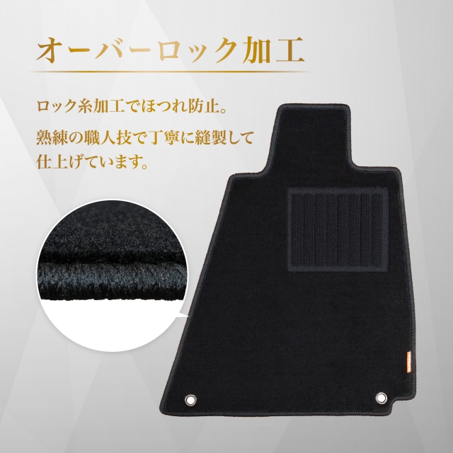 各車種専用カットで素材・縫製に拘ったオリジナルフロアマットです。耐久性や耐磨耗性、耐火性など、純正品さながらの高品質。水洗いはもちろんマット洗浄機もご使用になれます。また、お求めやすいリーズナブルな価格に設定。工場で直接開発をしていますので、車種専用なのにロープライスを実現!! また、従来にないカラーバリエーションや材質で、人と違ったインテリアコーディネイトが楽しめます。