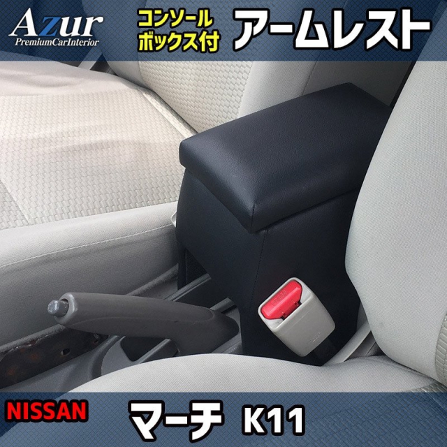 Azur(アズール) Azur アームレスト コンソールボックス 日産 マーチ K11 ブラック 日本製 肘掛け 収納 PVCレザー