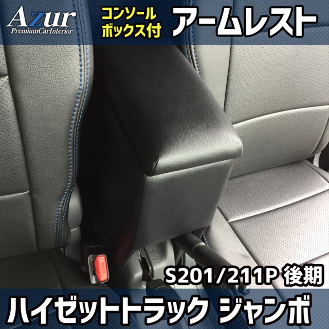 Azur(アズール) Azur アームレスト コンソールボックス ダイハツ ハイゼットトラックジャンボ S201P S211P 後期型 ブラック 日本製 肘掛け 収納 PVCレザー