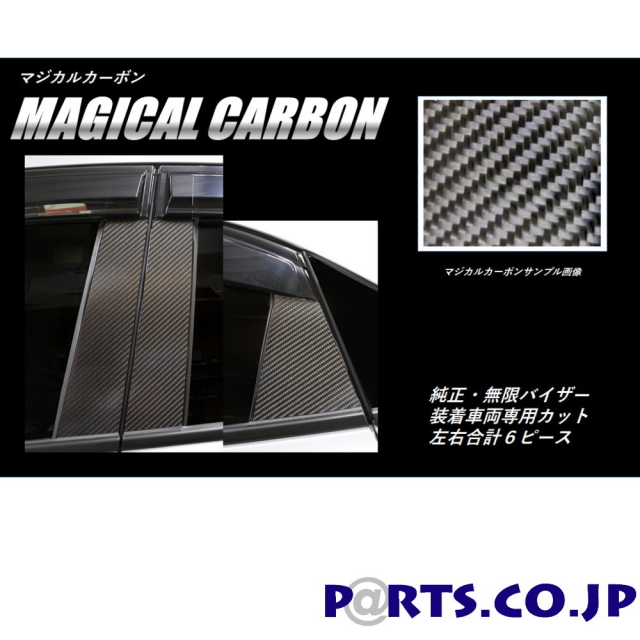 本物のカーボンを採用しながら自由にカットができ、曲面にも貼れるマジカルカーボン。リアルカーボンならではの質感は他製品を圧倒します。サイドピラーパネルにあわせてカット済みで貼り付けるだけで施工できます。