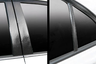 本物のカーボンを採用しながら自由にカットができ、曲面にも貼れるマジカルカーボン。リアルカーボンならではの質感は他製品を圧倒します。サイドピラーパネルにあわせてカット済みで貼り付けるだけで施工できます。