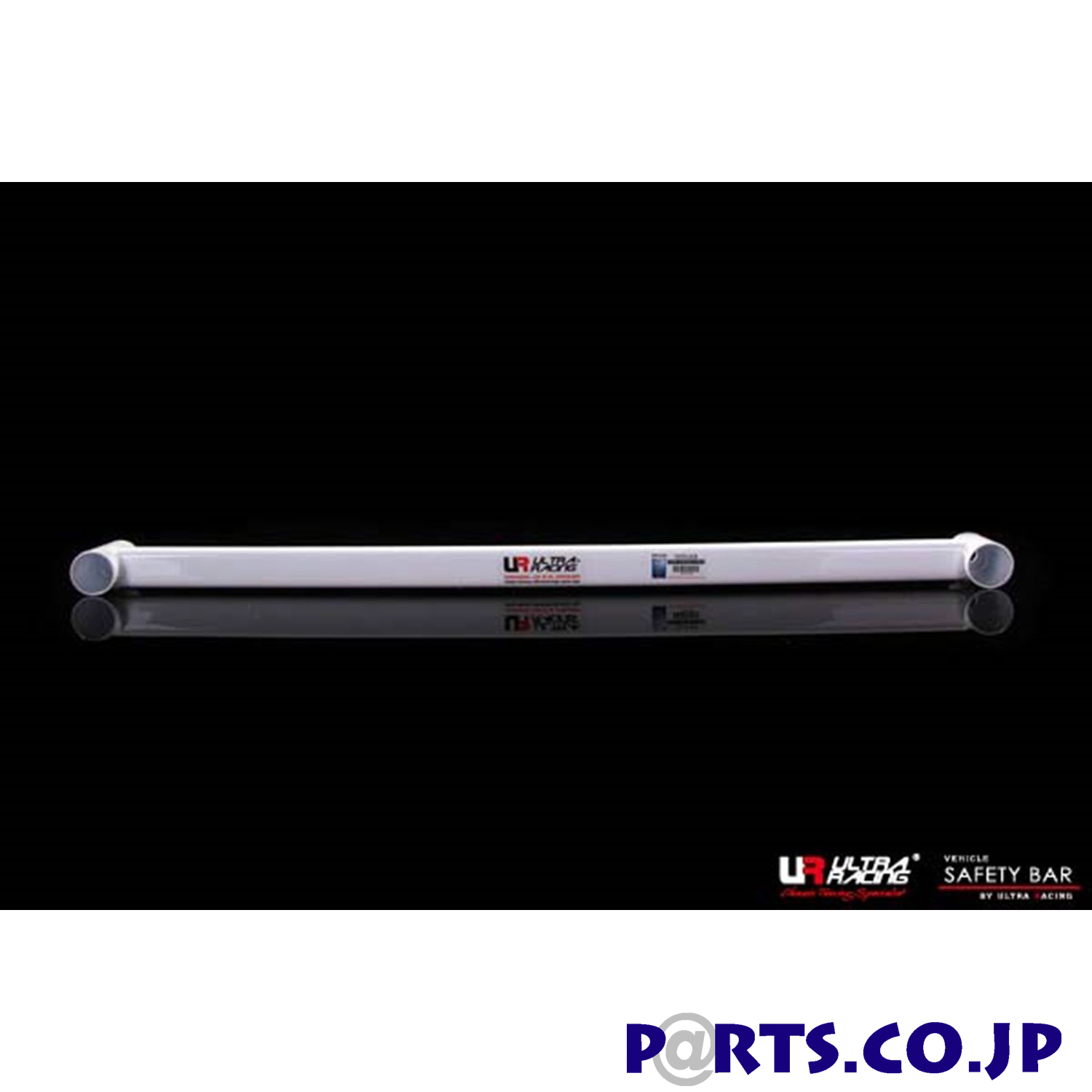 車体の前方左右を結合させ、フロントバンパー付近の捻れを抑制することができます。車線変更時のふらつき、不安定感を抑制する為、クイックなハンドリングが可能となります。ウルトラレーシングの補強パーツは耐久性を考慮している為、材質は強度の高いスチールを採用しております。安全性を考え衝突事故などを想定し他方の取付部分を破損させないよう衝撃を吸収出来る構造となっており、さらにバーが厚すぎると衝撃を大きく受けてしまう為厚みは1.2-1.6mmに設定しています。