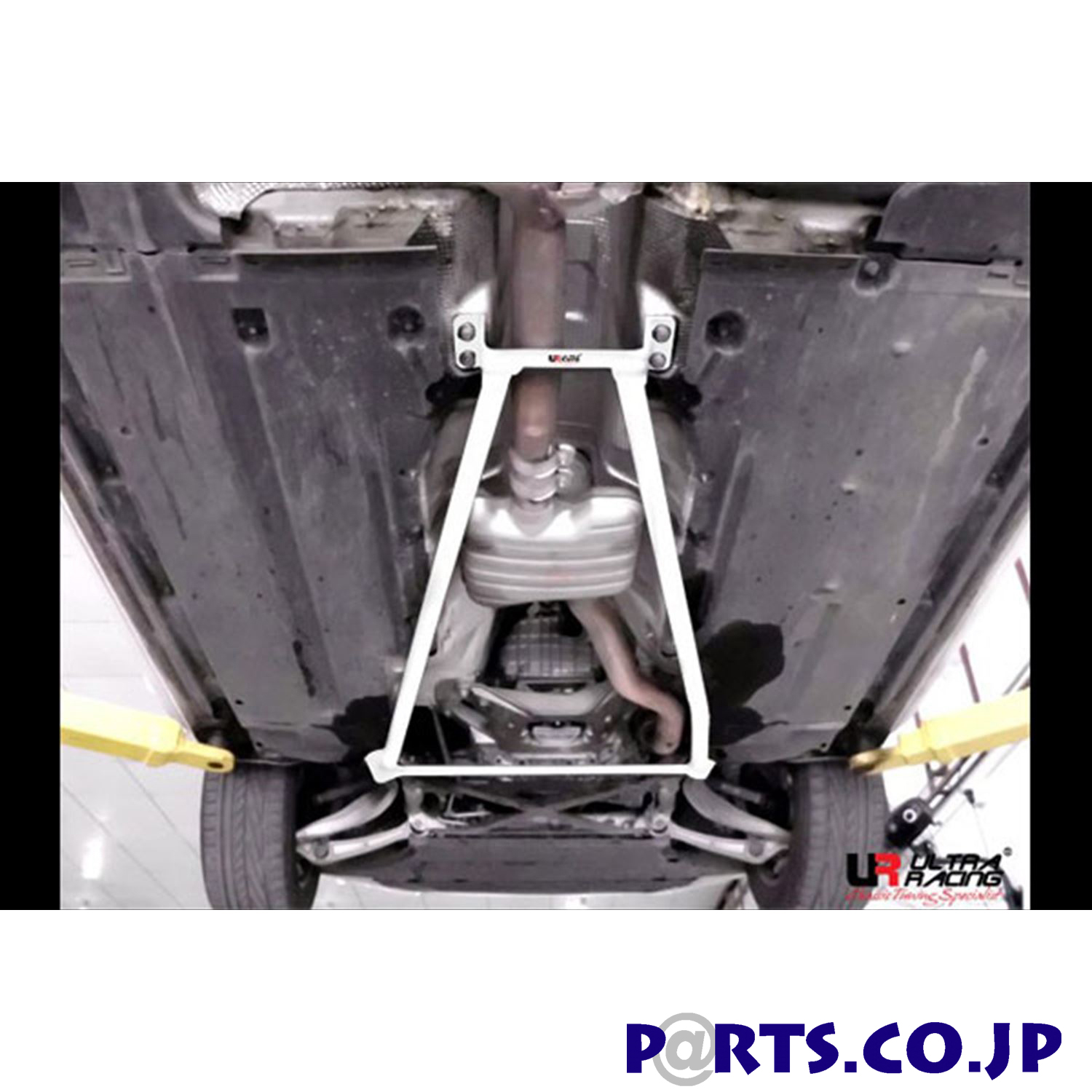 ウルトラレーシングのミドルメンバーブレースは中央のフロアトンネルを前後左右に補強し、ボディ中心部の剛性を高めます。中心部を補強することでボディ中心から捻じれ歪みを抑制し、バランスを保つ効果があります。また、経年劣化によるボディの歪みも抑制することが出来ます。フロントとリアの一体感がボディのふらつきを抑え、安定した高速走行や車線変更も可能であり、ハンドリング性能も向上します。
