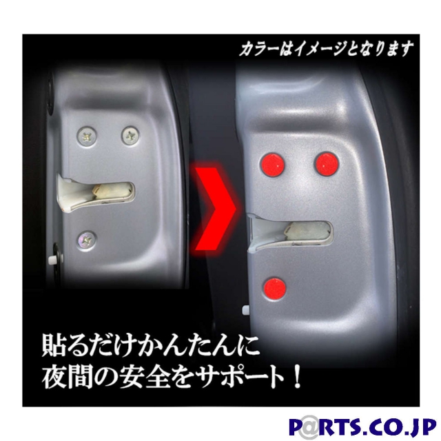 ドアボルト部を反射させ、夜間の安全性を向上 ドアボルトに貼り付けるだけの簡単装着 左右ドアボルト6個セット