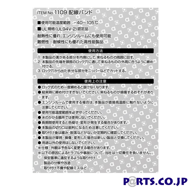 ■コードなどの結束に■頭部を小型化し軽快なかんごう作業と強い結束力を生みます■長期の係合に良く耐える高性能製品です■難燃性、自己消化性、電気絶縁性、耐候性、耐熱性に優れています