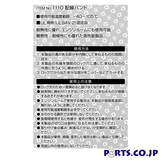 ■配線コードなどの結束に■頭部を小型化し軽快なかんごう作業と強い結束力を生みます■長期の係合に良く耐える高性能製品です■難燃性、自己消化性、電気絶縁性、耐候性、耐熱性に優れています