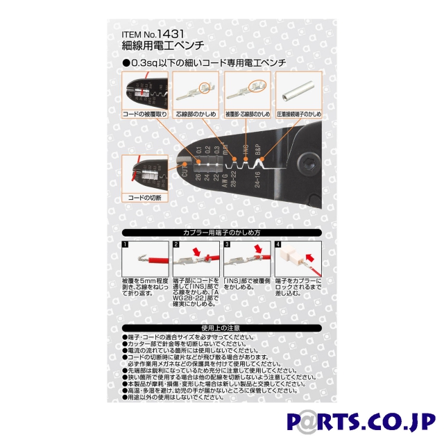 ■細線作業の必需品■細線(0.3sq以下)専用■被覆取り・端子かしめ・コード切断ができる