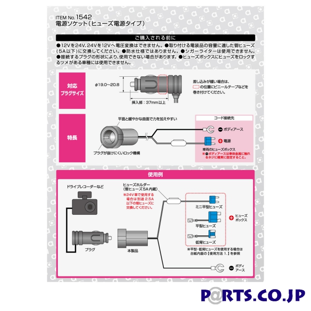 ■ヒューズ電源取り出しコード付属で、配線加工なしで電源取り出しができる■走行中の振動でもプラグが脱落しない、ロック機能付き電源ソケット■手に馴染む曲面形状で力を加えやすい