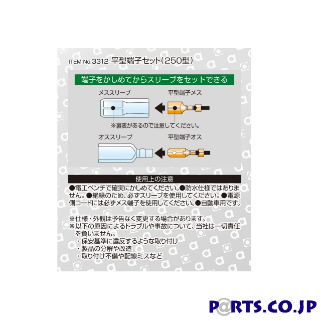 【仕様】・使用可能電力:DC12V車 200W以下DC24V車 400W以下・適合コードサイズ:AV(S)0.5 2sq・端子規格:250型