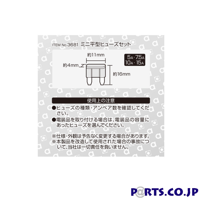 【内容物】・5A × 1個 7.5A × 1個 10A × 1個 15A × 2個計5個入