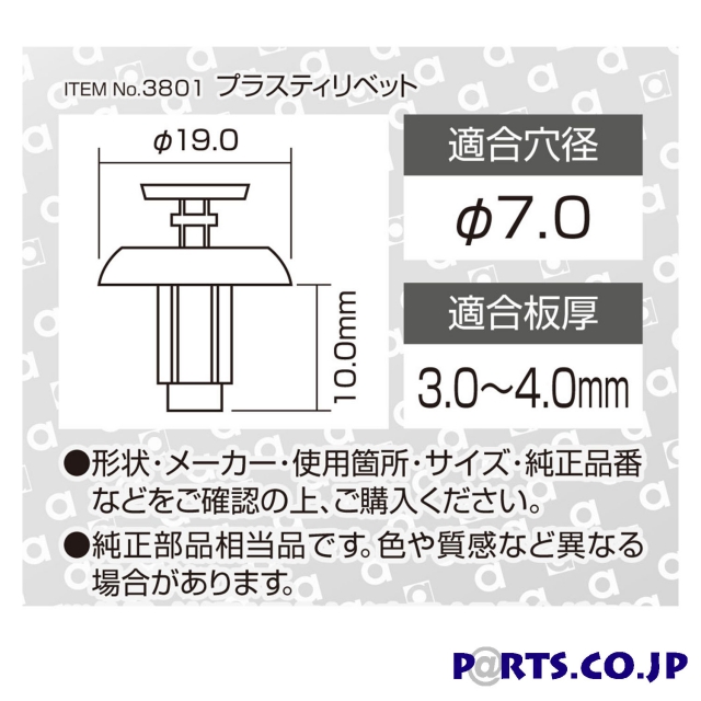 【仕様】・適合穴径:φ7.0・適合板厚:3.0 4.0mm・適合メーカー:トヨタ・適合純正品番90467-07211・58720-30010