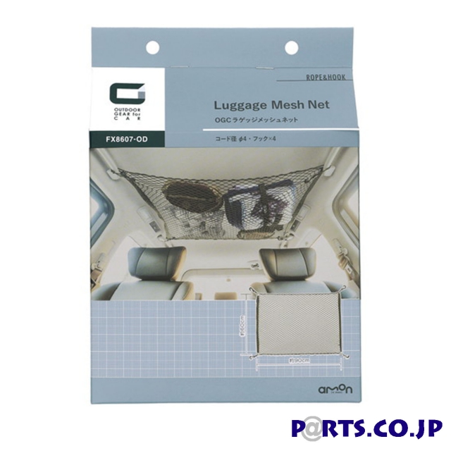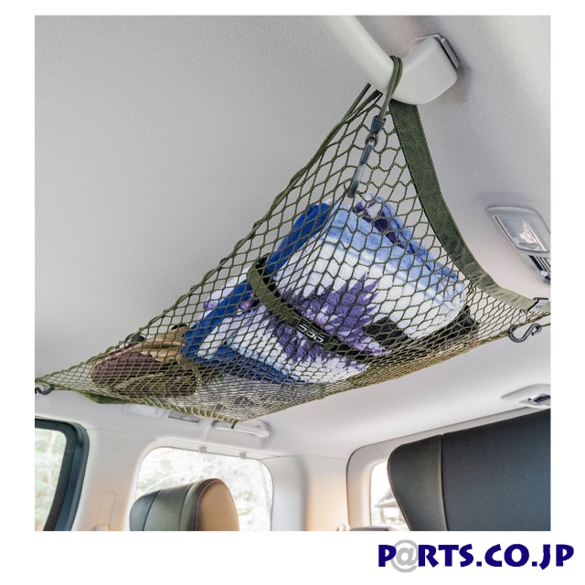 ◆細かい編み目で小さな荷物の収納/固定に便利◆樹脂製フックでクルマに傷が付きにくい