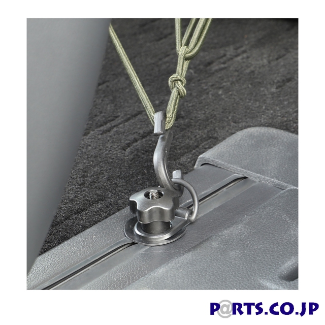◆車両のシートレールを利用して増設できるフック◆樹脂製フック/ゴムスペーサーでクルマに傷が付きにくい◆工具不要で取り付け簡単