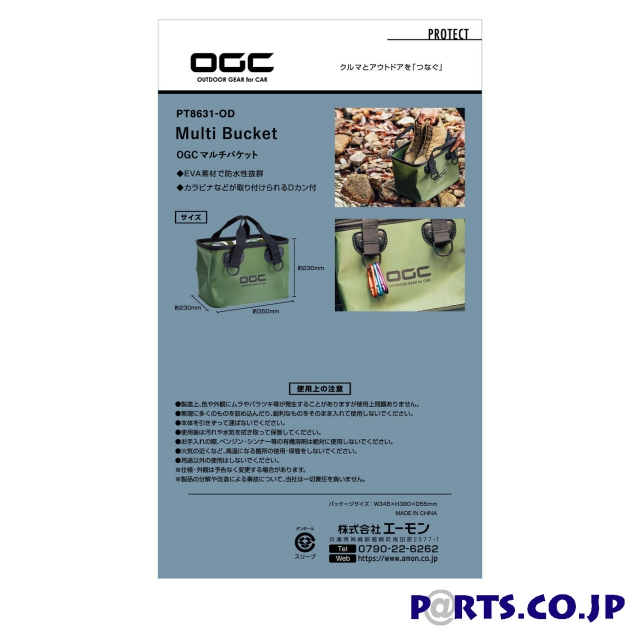 仕様・サイズ(外寸):約W350×D230×H230mm・容量:約16L・材質 本体:EVA 持ち手:ポリエステル Dカン:POM