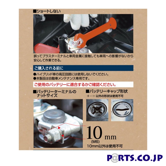 【仕様】レンチサイズ:長さ122mm/厚さ7mm バッテリーターミナル対応ナットサイズ 10mm(M6)※10mm以外は使用不可 材質:本体/スチール(クロームメッキ) 樹脂カバー/POM