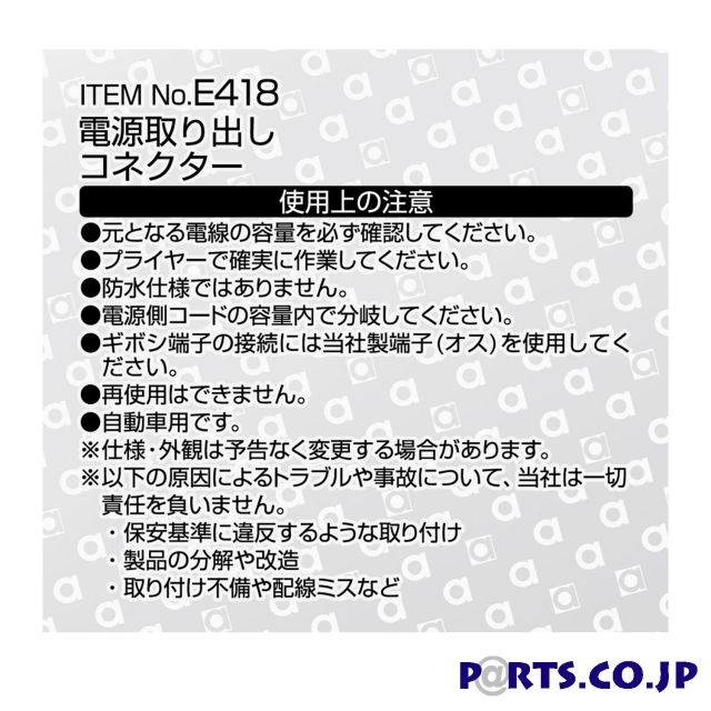 【仕様】・適合コード:AV(S)0.50~0.85sq・使用可能電力:DC12V80W以下/DC24V160W以下 【内容物】・電源取り出しコネクター:2個