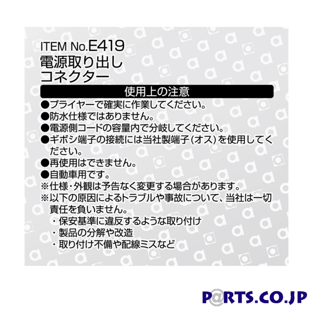 【仕様】・適合コード:AV(S)1.25~2.00sq・使用可能電力:DC12V200W以下/DC24V400W以下 【内容物】・電源取り出しコネクター:2個