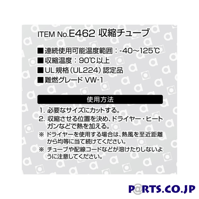 ■UL規格(UL224)認定品■ドライヤーなどの熱(60℃~100℃)で50%収縮■サイズ4φ(内径)X140mm■材質難燃性ポリオレフィン■入り数7本
