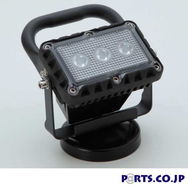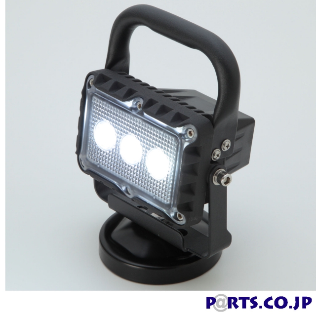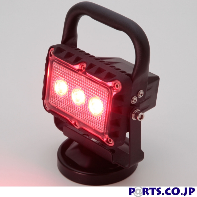 台座の部分に磁石が付いた3段光調式LEDワークライトです。作業時に鉄の部分があれば場所を選ばずにつけることができます。また、トラックや積載車で作業をする際に、後方から来る車に対して「赤のフラッシュ」にて注意喚起が可能。
