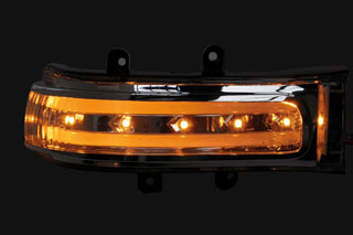 純正ドアミラーウィンカーのレンズを交換するだけでよりスタイリッシュなドアミラーに!高輝度LED採用で視認性も向上し、安全性もアップ!レンズ中央のチューブがブルーのデイライトまたはスモールに点灯。ウィンカー使用時にはオレンジの点滅点灯に切り替わります。