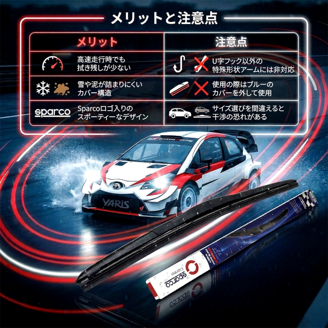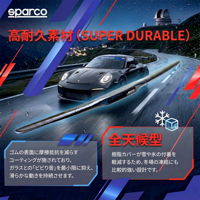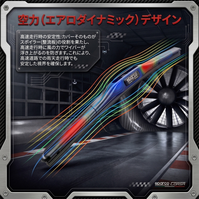 エアロデザインを採用したスタイリッシュなフォルムで、車両の外観に洗練された印象をプラス。さらに、高耐久設計により長期間安心してご使用いただけます。Sparcoロゴをあしらったレーシーなデザインが特徴で、装着するだけで窓まわりを引き締め、愛車のドレスアップにも最適なアイテムです。
