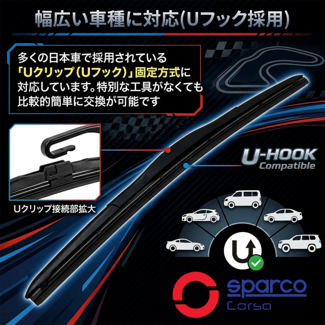 主な特徴 最大限の拭き取り面積を実現するデザイン。風の抵抗を低減して最適な拭き取り性能を発揮。静かでスムーズ、振動も最小限に押さえます。あらゆる気象条件に適するオールシーズンタイプです。Uフックシステムで簡単取り付け。