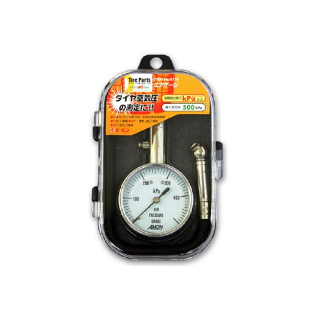 ■タイヤの空気圧測定に■最大測定値500kPa■口金部が360°回転可能■リセット機構■エアー調整(減圧)機構■測定値保持機構■ホース付■材質本体/スチール(クロームメッキ)文字盤・針/アルミニウムガラス面/ガラス口金/黄銅(クロームメッキ)ホース内/ラバーホースホース外/テトロン糸■入り数1個