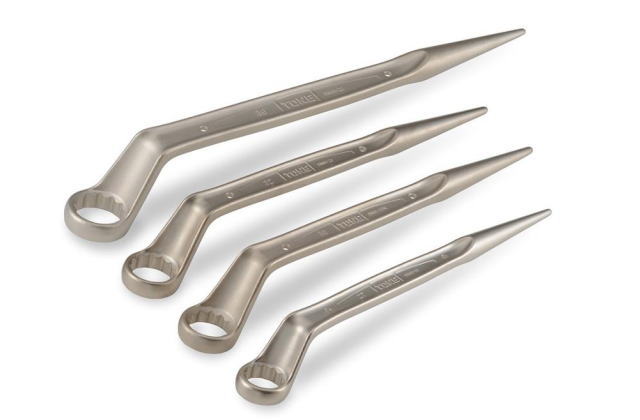 ●スパナのスピードとめがねレンチの強さを兼ね備えており、仮締めをスパナ側で、本締めはめがね側でというように1本2役の機能工具です。●めがね部の柄の曲がり角度15°です。●モデルチェンジで、さらに使いやすくなった手に馴染む柔らかい曲線デザインです。