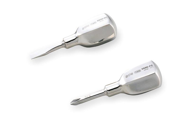 スリム先端で狭所作業に最適!極小サイズの潰れたネジ、特殊ネジ等の取外しに最適。プリント基板や電子機器などのM2以下の精密ネジに最適です。ポケットサイズの120mm、わずか100gの軽量設計。スリムな先端で奥まった箇所でも作業が可能です。環境に優しい素材エラストマー樹脂を採用し手にも優しくフィットします。静電気対策を施したESD対応となっており表面抵抗値1×106~107Ω/sqで基板上の作業でも安心してご使用頂けます。※絶縁工具ではありません。落下防止に最適のストラップホール付。