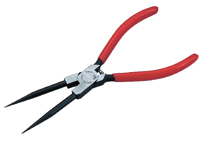 ●本体のカシメ部はガタ付きが少なく、開閉はばね付です。●クローが長いロングタイプなので、狭く奥深い場所で威力を発揮します。●直爪穴用スナップリングプライヤ