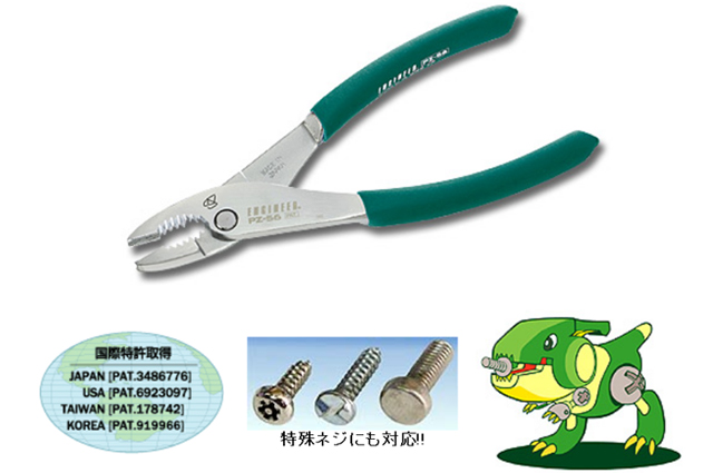 潰れたネジ、錆びたネジ、固着ネジをガッチリつかんで外します!!独自設計のタテ溝+ヨコ溝でネジ山を確実に保持します。【PAT.】頭の潰れたネジ、サビついたネジの取外しに最適です。特殊形状ネジの締付け、取外しに最適。コンビネーション型でサイズの2段切替が可能です。スリムな先端で奥まった箇所でも作業が可能です。セットピンに負荷のかからないクロスボディーで耐久性に優れています。【PAT.】